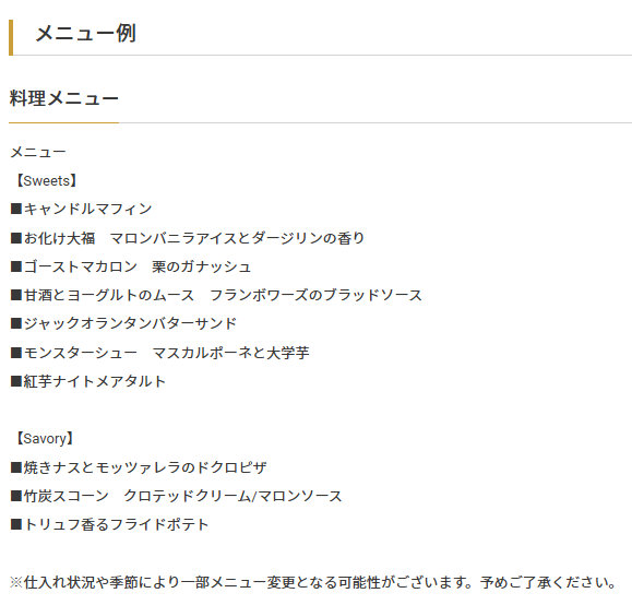 🎃ハロウィンアフタヌーンティーの内容