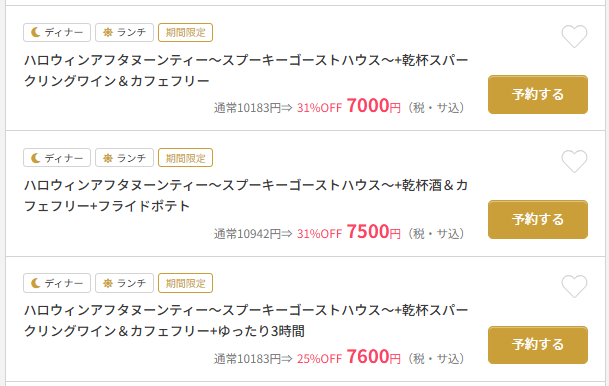 - 特典付きプラン:乾杯スパークリング付き、2時間カフェフリー、女子会限定プランなど