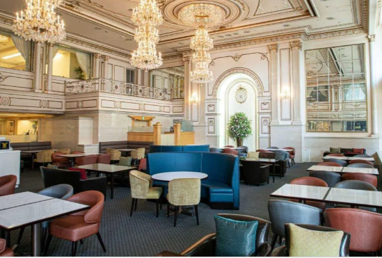 - 空間:天井高のラウンジで開放感あり、ソファ席や個室も完備
