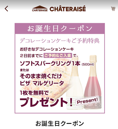 誕生日ケーキを事前予約すると、以下のいずれかが無料でもらえます