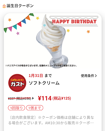 太っ腹なバースデー特典ですね!