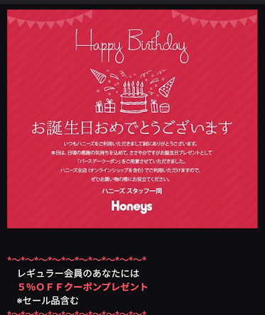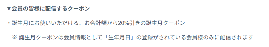 誕生月に使える20%オフクーポンがもらえます👀