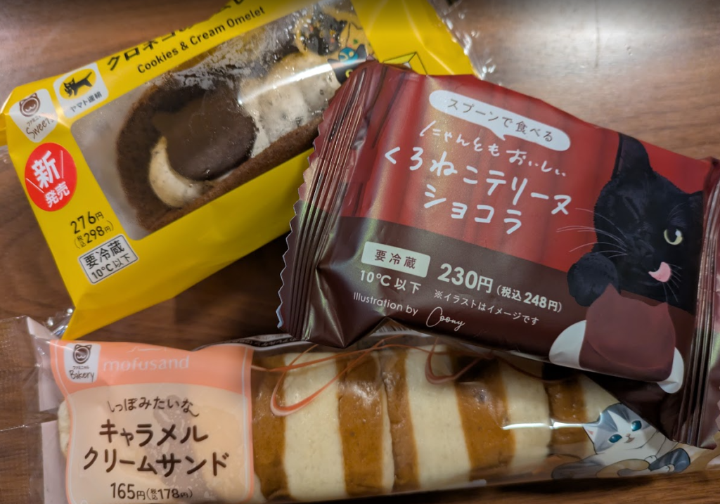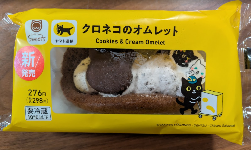 見た目の可愛さは今回のフェアでトップクラス。 ふわふわのオムレット生地に、黒猫のイラストがちょこんと乗っていて、食べる前からテンションが上がります。