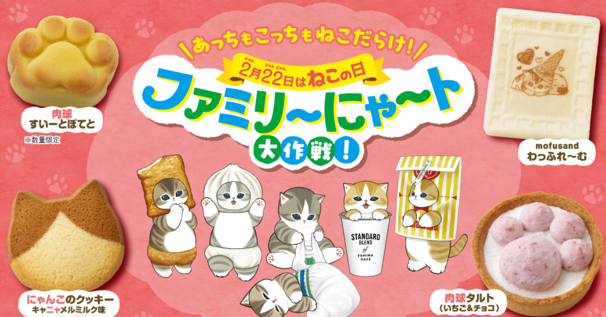 今年も猫の日がやってきます 楽しみにしていた「ファミリ~にゃ~ト」 今年も開催されています😸 2月22日はねこの日!毎年過去最高の売上を更新する 「ファミリ~にゃ~ト大作戦!」2月10日(火)から開催 「mofusand ...